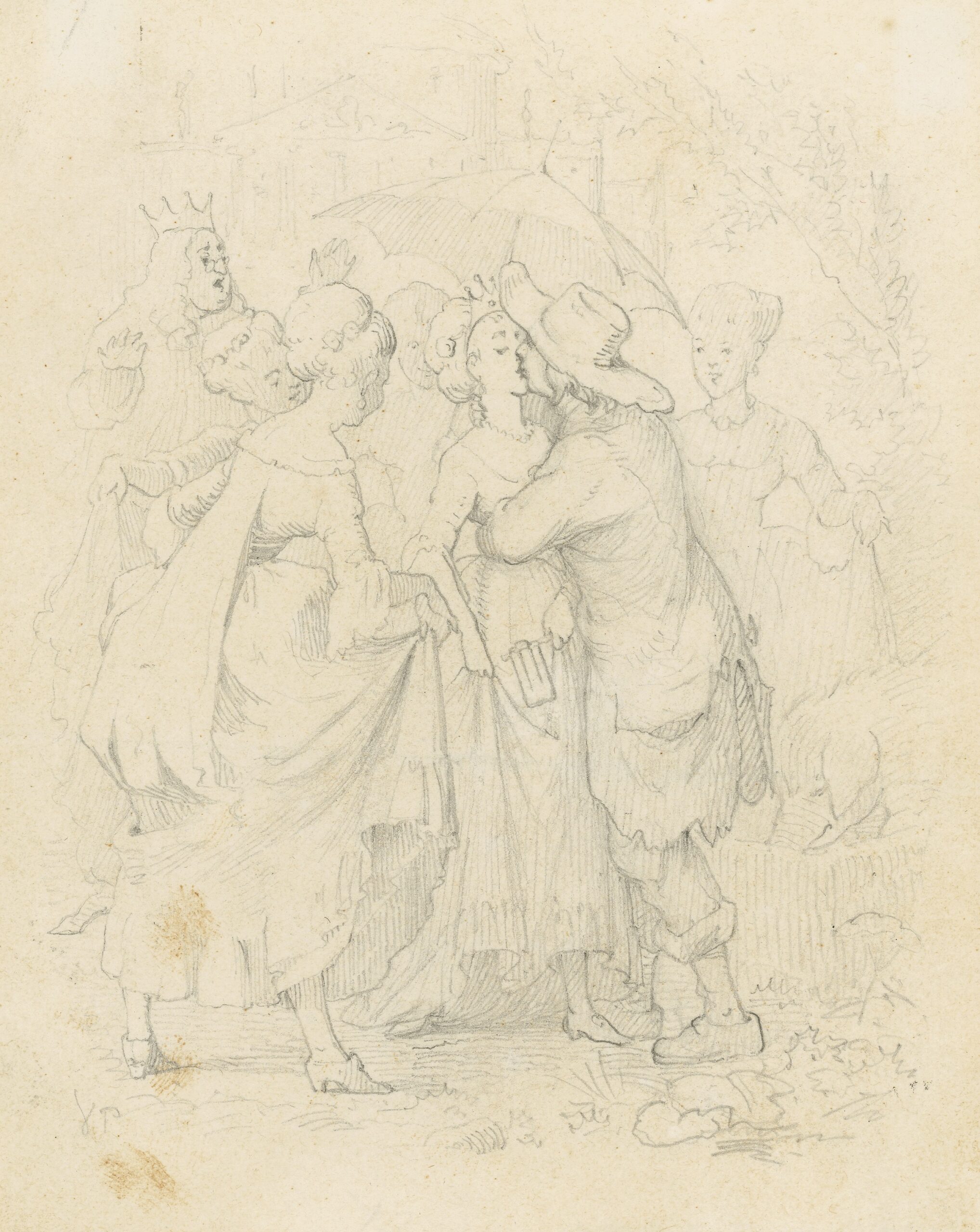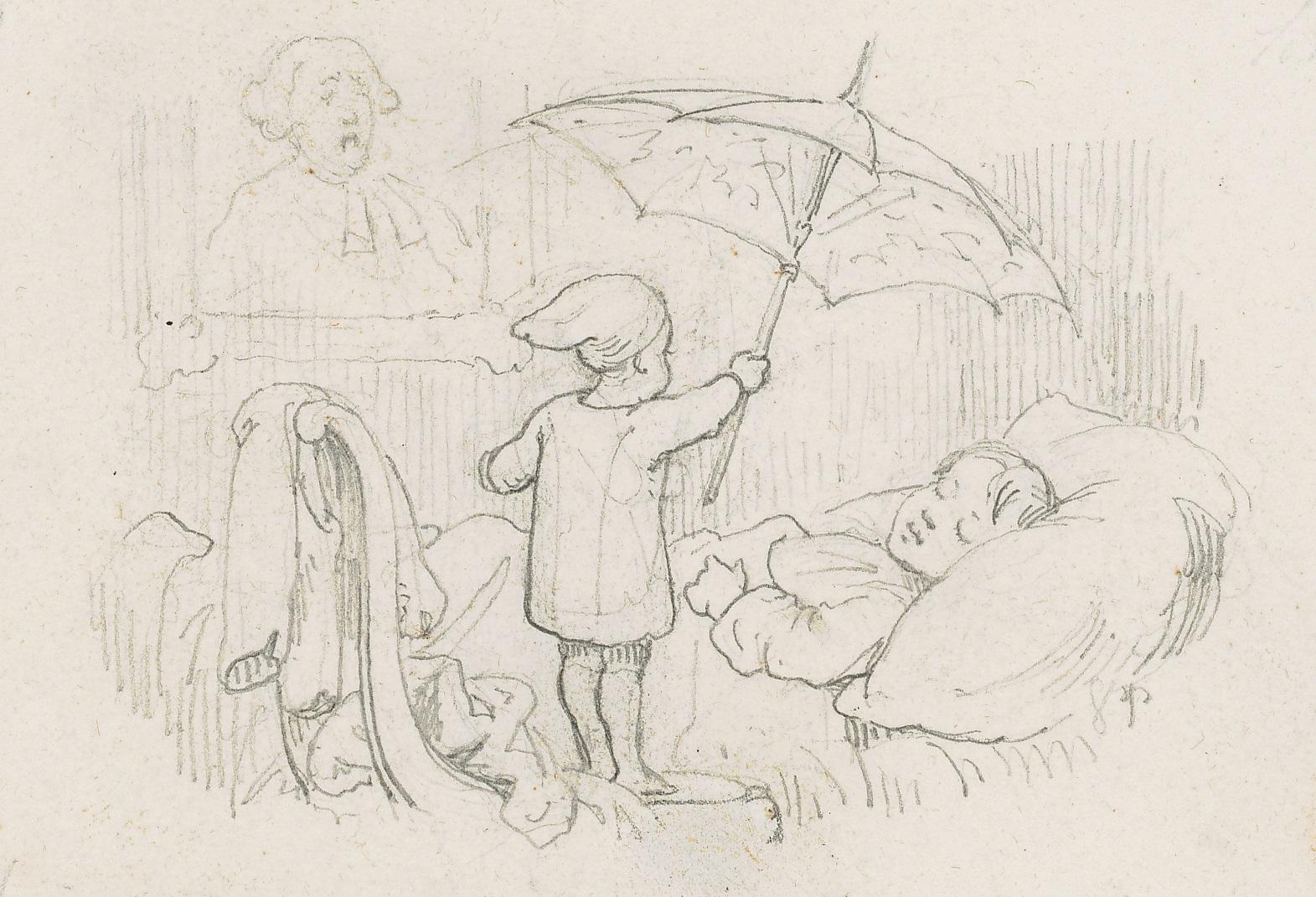 Illustration til Ole Lukøje af Vilhelm Pedersen, 1848.