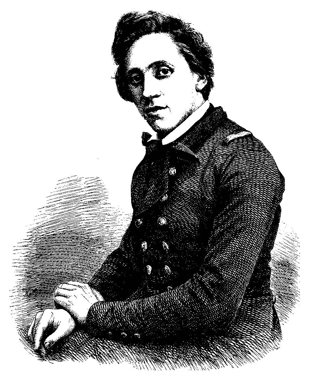 Og Menneskeslægtens Genius stod i den fattige Stue, bøiede sig over Sengen og trykkede et Kys paa Drengens Pande: ”Bliv stærk i Hæder og stærk i Livets Kamp! Med Sandhed i dit Bryst, flyv mod Sandhedens Land!”