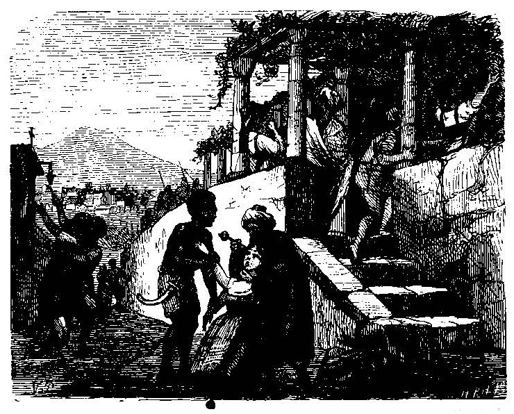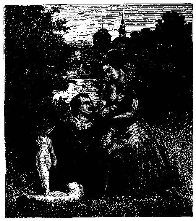 I Aaret 1838 vendte Throvaldsen, hvis Venskab Andersen allerede havde vundet i Italien, tilbage til sit Fædreland; hans Indtog i Kjøbenhavn var en sand Nationalfest; i hans Selskab paa Nysø hos Baronesse Stampe skrev Andersen flere af sine Eventyr, der dengang ikke havde synderlig Betydning herhjemme. Thorvaldsen morde det dog at høre og atter at høre de samme Eventyr; under hans mest poetiske Arbeider stod han med Smiil om Mund og lyttede til Historien om ”Toppen og Bolden” og ”Den grimme Ælling”, og tidt i Tusmørket, naar Familien sad i den aabne Havestue kom den store Kunstner stille hen, klappede Digteren paa Skulderen og sagde: ”Faae vi Smaa ikke et lille Eventyr?”