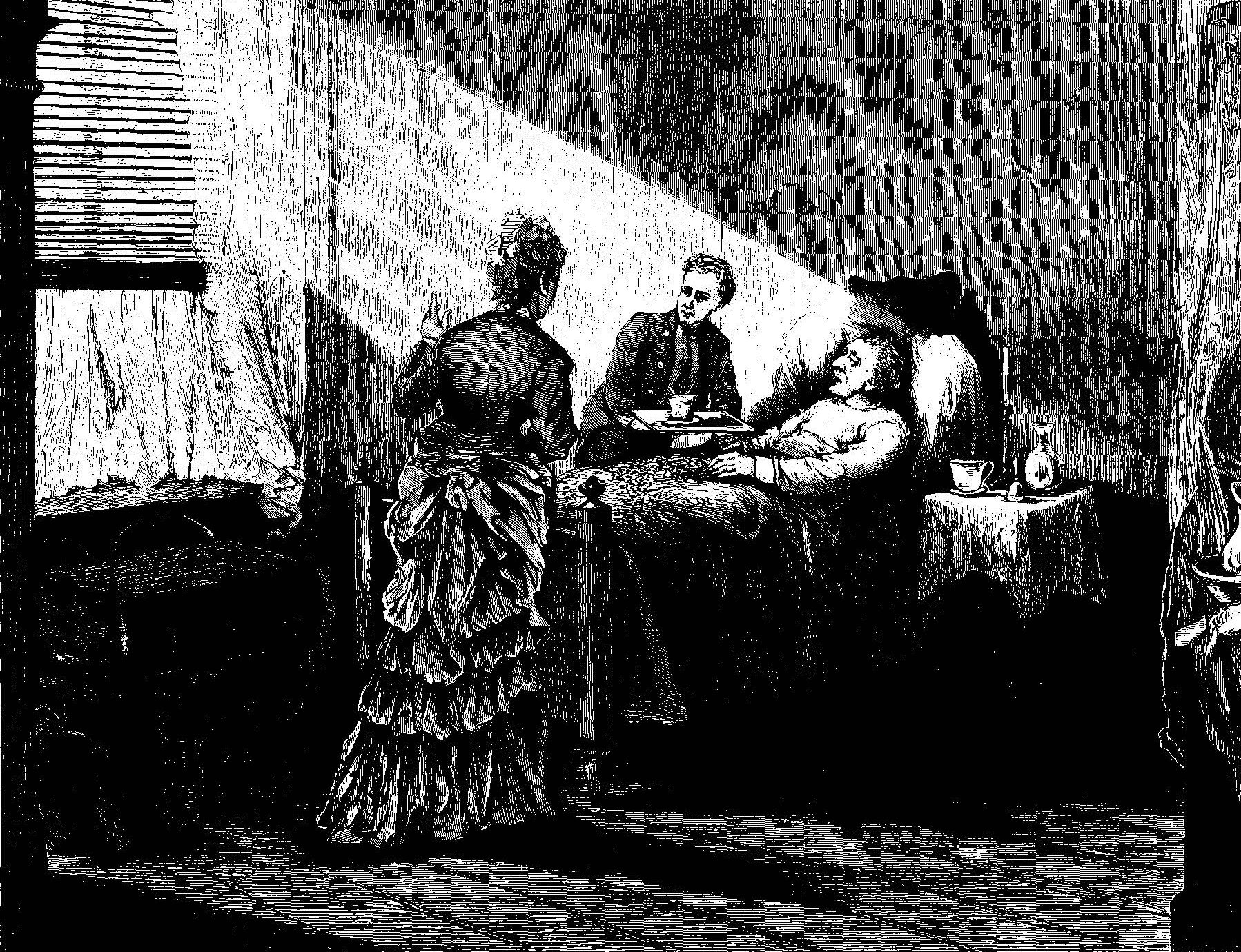 Inde i Stuen hos den brave Huusmoder sad to af Sønnderne, endnu smaa, men med voxne Tanker. Om Ret og Skjel havde ogsaa Moder altid talt til dem, om at holde paa Sandheden, det var Vor Herres Ansigt i denne Verden.