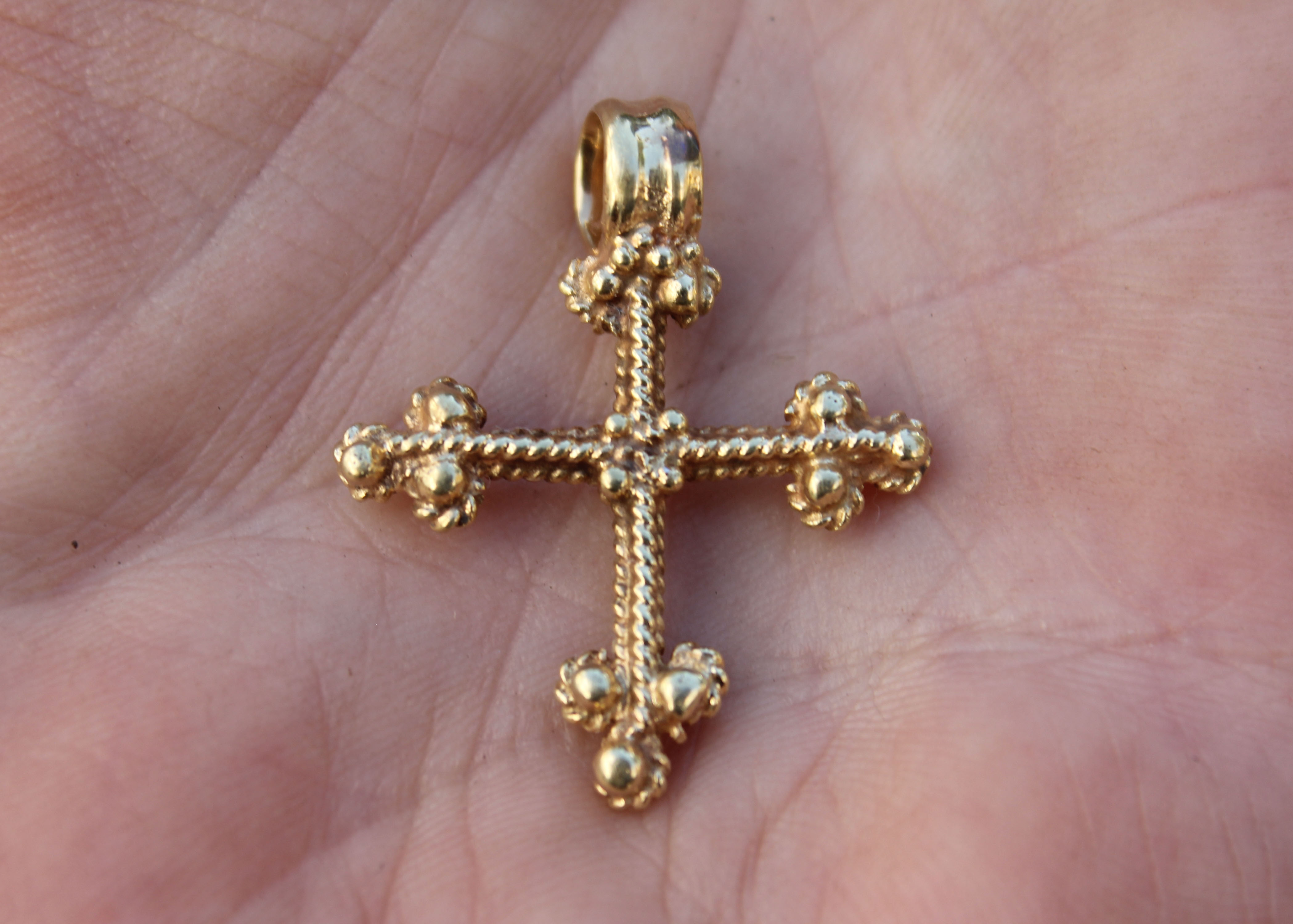 På udgravningen havde arkæologerne god hjælp af amatørarkæologen Ole Blaabjerg fra arkæologiforeningen Harja. Ole kom dagligt med sin detektor og ledte efter metaller. Ole fandt mange gode ting i udgravningen, men et af pragtstykkerne var et fint guldkors fra 1300-tallet.