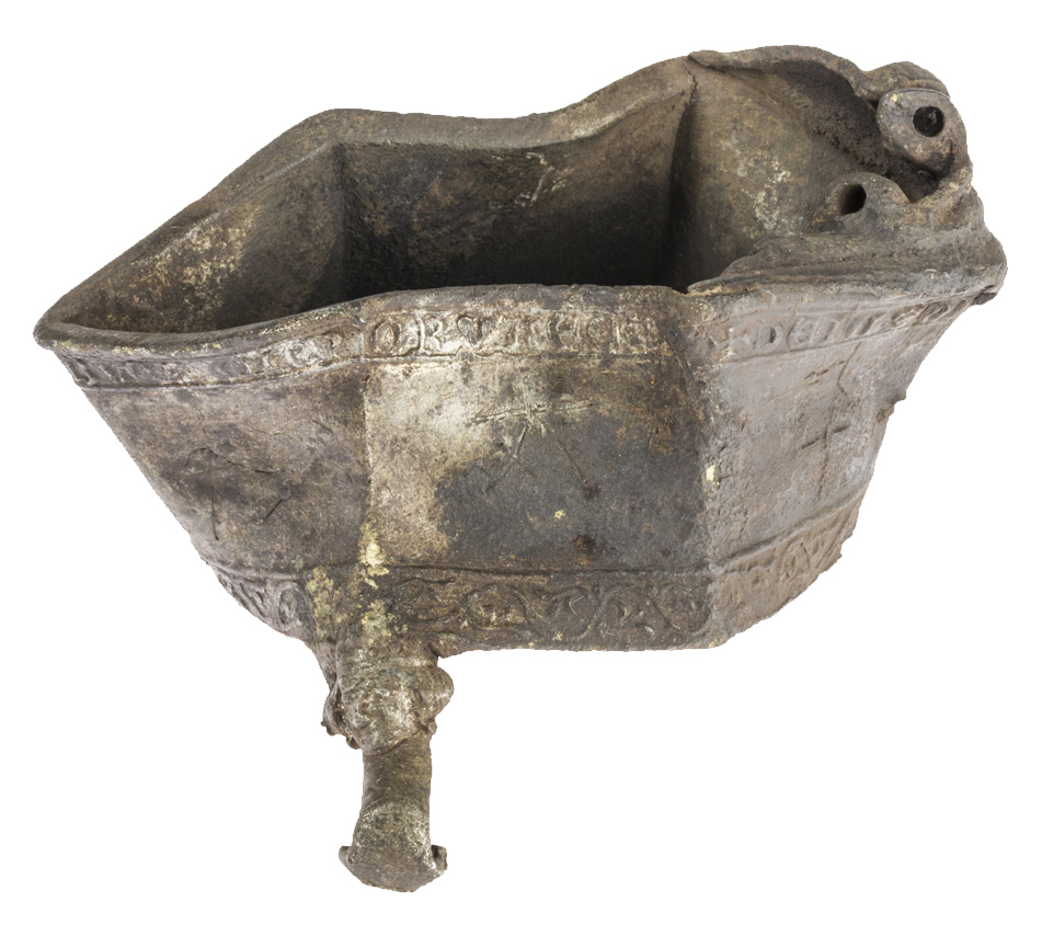 En tredje del af formidlingen var den digitale del, der foregik på både hjemmesider og sociale medier. Og i december var det formidlingen gennem Facebook, der bragte arkæologerne tættere på en tolkning af en ny spændende genstand. I slutningen af november havde Ole nemlig endnu en gang gjort et fund – denne gang et kar af tin med billedmotiver og inskriptioner. Tolkningen af karret voldte arkæologerne hovedbrud, men efter en fremvisning af karret på Facebook meldte en kollega sig på banen med en tolkning, og på den måde blev mysteriet om karret til historien om et saltkar. Saltkar var almindelige på bordet i middelalderen, men der er kun bevaret få i Danmark. Karrene har haft en funktion bl.a. som del af bordservicet ved de finere slægters middage, hvor de markerede deltagernes sociale rang. Og da udgravningen senere fik fint besøg, kunne der slås en krølle på denne historie.[1]