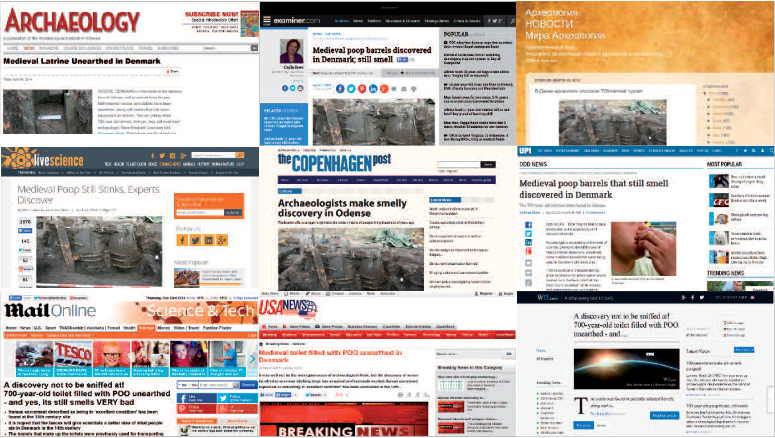 Det er ingen hemmelighed, at medierne kan finde på at hente deres historier fra nettet, og i dette tilfælde var det Jyllands-Posten, der fandt historien. Og så kunne det hele være sluttet dér – og det gjorde det også i første omgang. Men en dag, en lille måneds tid senere, blev museet kontaktet af The Weather Channel – en stor amerikansk vejrstation – der havde hørt om vores tønder, og som ville bringe et indslag, og så rullede historien om tønderne. Inden længe blev museet kontaktet af Discovery Channel og Huffington Post og da de bragte nyheden, var latrinerne pludselig i medierne i USA, England, Indien, Afrika, Rusland m.fl. – tønderne, og dermed vores udgravning i Odense, var nu blevet verdenskendte.