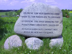 Lærer Pedersens digt på Bregnebjerg-gravpladsens pryddysse. Foto: Mogens Bo Henriksen.