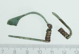 Bronzefibula, overset ved Nationalmuseets udgravning på Bregentved-gravpladsen. Foto: Jørgen Nielsen.