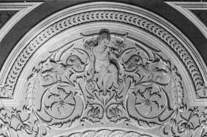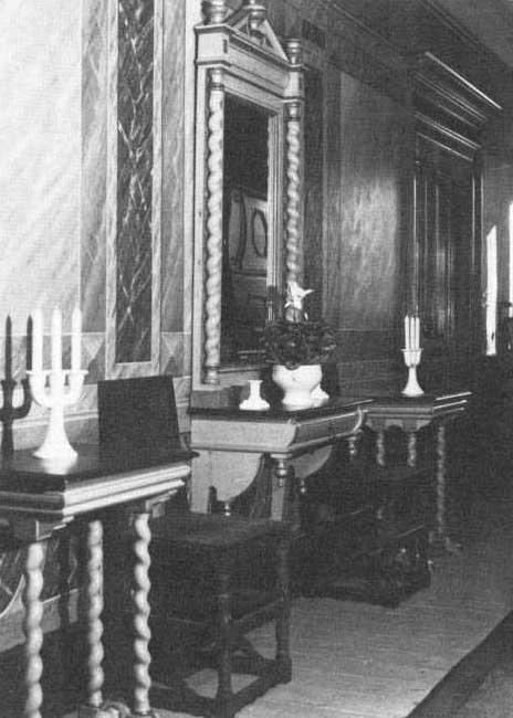 Verandaen, for enden af gangen, er nu nedrevet. Her havde Weesch lavet et lærredsloft med tre engle som holdt hinanden i hænderne og med blå himmel og skyer.