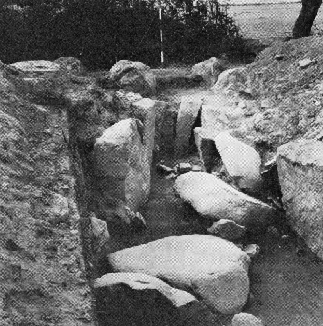 Den sidstnævnte megalitiske gravhøj blev genudgravet 1966-67 af Langelands museum. Wiborgs oplysning om det ene gravkammers „pæreformede“ grundplan antydede, at det tilhørte en bestemt type mellemneolitiske stengrave, der her i landet forekommer ret sjældent, og kun indenfor et område begrænset til det sydlige Danmark, især Østersøegnene.[7] Denne type gravkamre er karakteriseret ved mangfoldige betegnelser. Foruden den i Annaler anvendte, ældste kendte karakteristik af denne kammertype, der hentyder til gravrummets pæreformede grundplan, omtales de som: Andre gangbygninger end jættestuer;[8] jættestuer, hvor gangen udgår fra den ene kortside;[9] store, jættestueagtige gravkister;[10] gravkister,[11] eller kistekamre.[12]