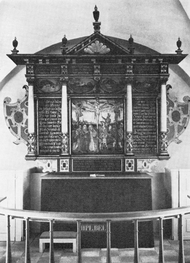 Den nye altertavle blev en lille, meget velproportioneret renæssancetavle. Fra et lavt postament rejser sig bagtil et storfelt og to halvt så brede sidefelter, hvorfra en baldakin skyder sig frem og bæres fortil af fire slanke søjler. Så vidt er tavlen ikke usædvanlig. Usædvanlig er derimod afslutningen opefter, hvor det rektangulere topfelt under trekantgavlen ganske mangler og tilsyneladende aldrig har forekommet. Den lange gavl står direkte på baldakinens kraftige gesims ledsaget af vaseformede pinakler, og til hver side i de udskårne sidevingers ovaler læses den reliefskårne datering: 1604.