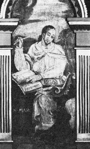 Også på Aarslevstolen finder vi de fire evangelister malet i storfelterne, og som i Kullerup er de fremstillet siddende i landskabet skrivende på deres evangelier. Et andet karakteristisk træk følger med fra Kullerup. Evangelisterne Matthæus og Marcus er fremstillet som skæggede herrer, medens de to andre er glatragede, et træk man forøvrigt kan genfinde hos nogle af de nederlandske manierister som f. eks. Marten de Vos. Og ellers er penselføringen, farverne og opfattelsen af personen ganske den samme, som man ser det på Kulleruptavlen. En yderligere sammenligning tingene imellem vanskeliggøres dels derved, at maleren i Aarslev kirke har udført sine billeder direkte på en midlertidig maling, som stolen vel har fået i forbindelse med opstillingen, dels derved, at billederne i Aarslev kirke er betydeligt ringere bevaret end Kulleruptavlens malerier. Et holdepunkt, som rammeværkets staffering kan give, må vi også afstå fra, da rammeværket på Aarslevstolen tilsyneladende aldrig har været afdækket og i dag står nymalet. Men identiteten kan der ikke herske tvivl om, og selv om arbejdet i Aarslev kirke vel ikke helt kommer på højde med arbejdet i Kullerup, så har det dog sin store interesse derved, at man her ser en afvigende opfattelse af samme motiv.