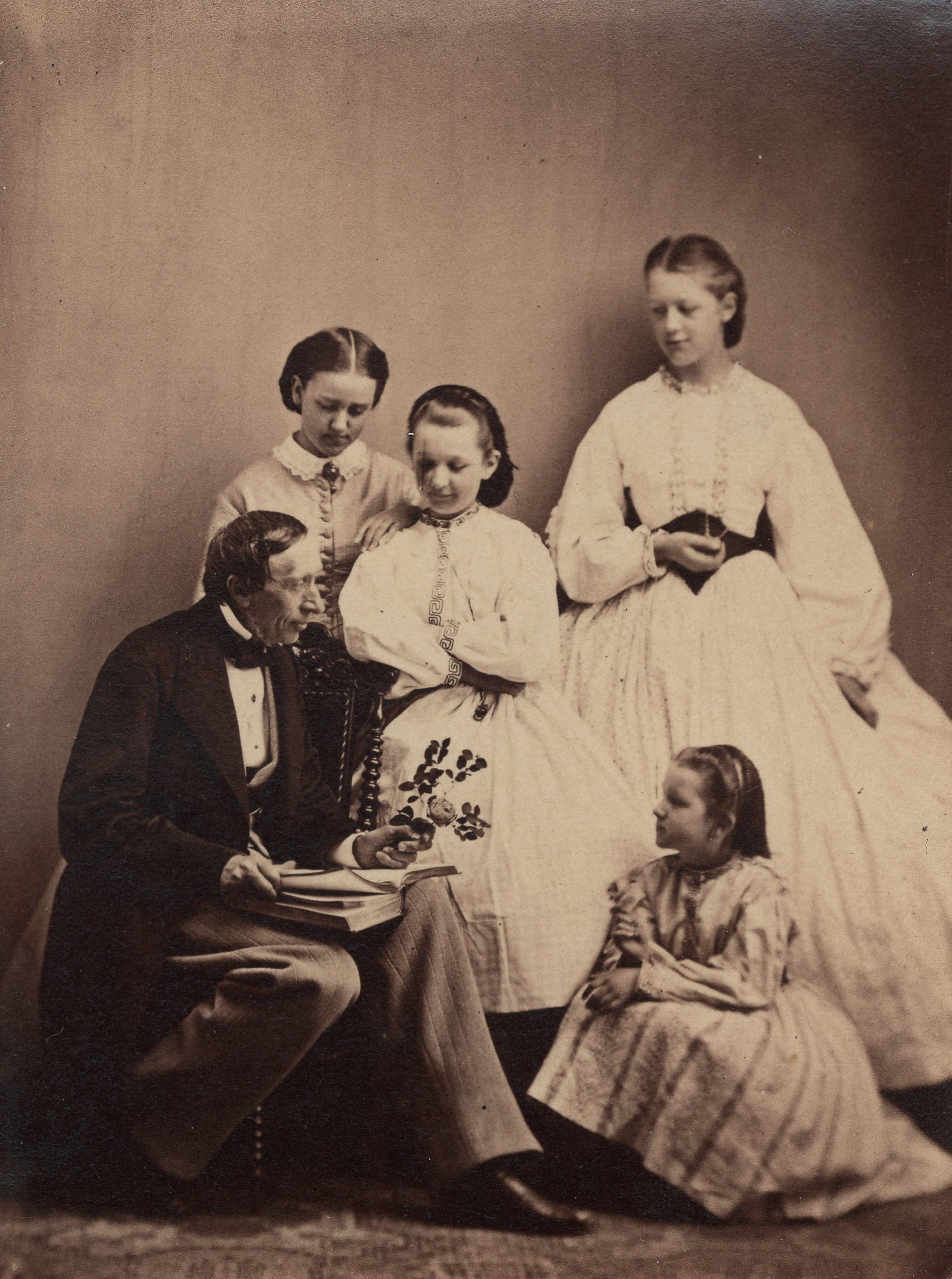 I modsætning til fremstillingen af andre digtere, som oftest iscenesættes ved skrivebordet under arbejdet med pen og en bunke papirer, repræsenteres Andersens poetiske virksomhed sædvanligvis i genrebilleder, hvor han sidder i en kreds af tilhørere, og hvor han læser sine eventyr op af en bog, som han holder i hånden.[1] Dette billede af Andersen som en mundtligt formidlende digter er naturligvis blevet præget af hans selvbiografiske fremstillinger og ikke mindst af hyldesten til den mundtlige performancekultur i Improvisatoren (1835).