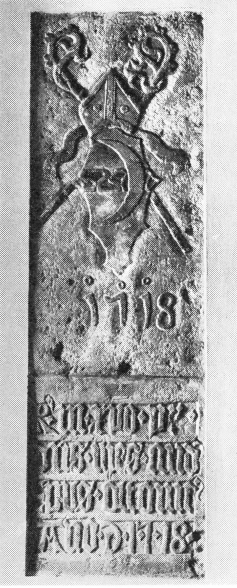 - ^ H. St. Holbeck: 1.1., p. 452. Det kendte kobberstik i Rasmus Nyerups og Søren Abildgaards Antiqvariske Rejser, 1808, p. 79, er uanvendeligt, da skjoldet ikke er gengivet på det.