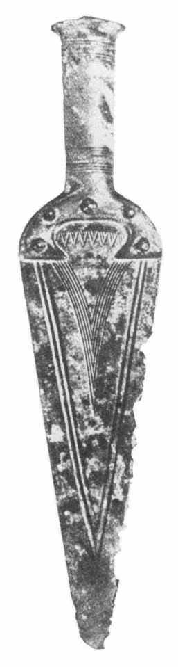 - ^ Se årb. f. Nord. Oldkyndighed 1979 pg. 91 ftg. 3. Foto af den danske arkæologiske udstilling i Paris 1889. Dolken ses i montrens venstre fløj midtfor.