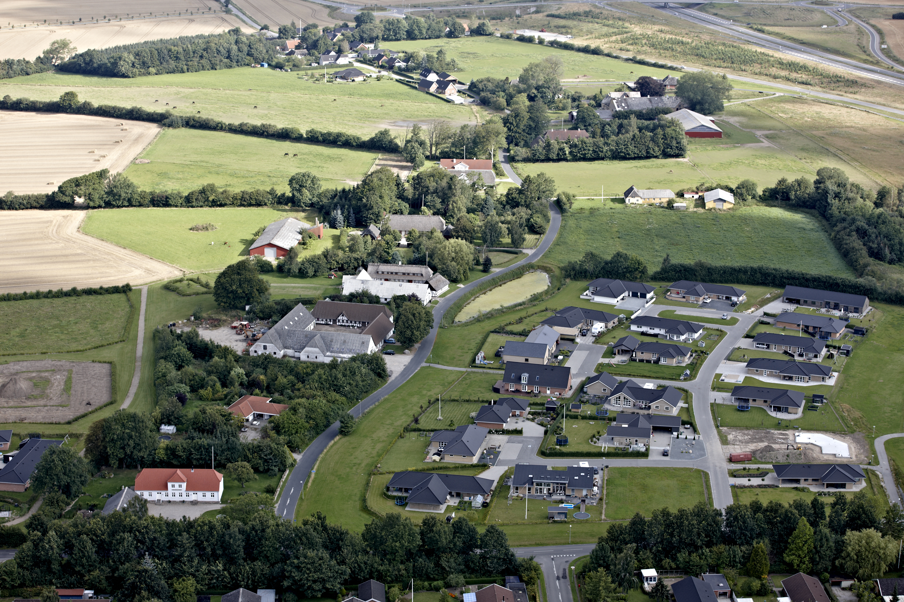 Et aktuelt forskningsprojekt ved Odense Bys Museer ser nærmere på dannelsen af landsbyerne i overgangen jernalder-vikingetid-middelalder med Rynkeby – her set fra luften – som primær case. Undersøgelserne, der blandt andet er baseret på omfattende udgravningsdata og navnehistorisk materiale, tager tråden op fra museets tidligere forskning på området i krydsfeltet mellem arkæologi og historie.