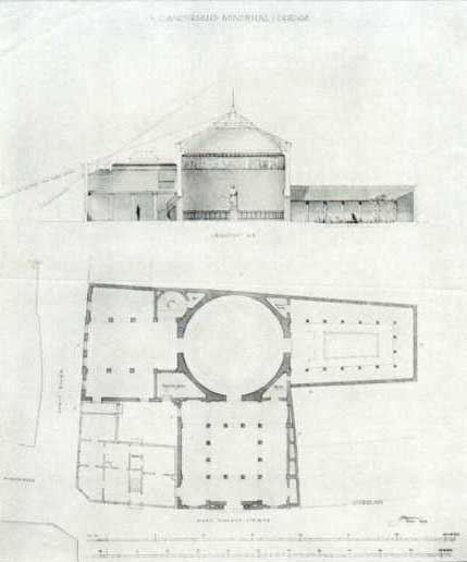 “… Arkitekt Jacobsen havde en Tegning parat, og man mente, at den kunde opføres for 60.000 Kr. Og saa faldt Bomben: ‘Nu beror det paa Dem, Rektor, om vi skal have en Mindehal eller en Mindefest’. Saaledes lød Ordene. Jeg erindrer dem tydeligt… i et lukket Byraadsmøde … udtalte Borgmesteren med et sarkastisk Smil, at det sikkert vilde være en kær Opgave for Rektor at skaffe de 80.000 Kr. – Summen var altsaa nu steget med 20.000 Kr. – som krævedes.”[7]