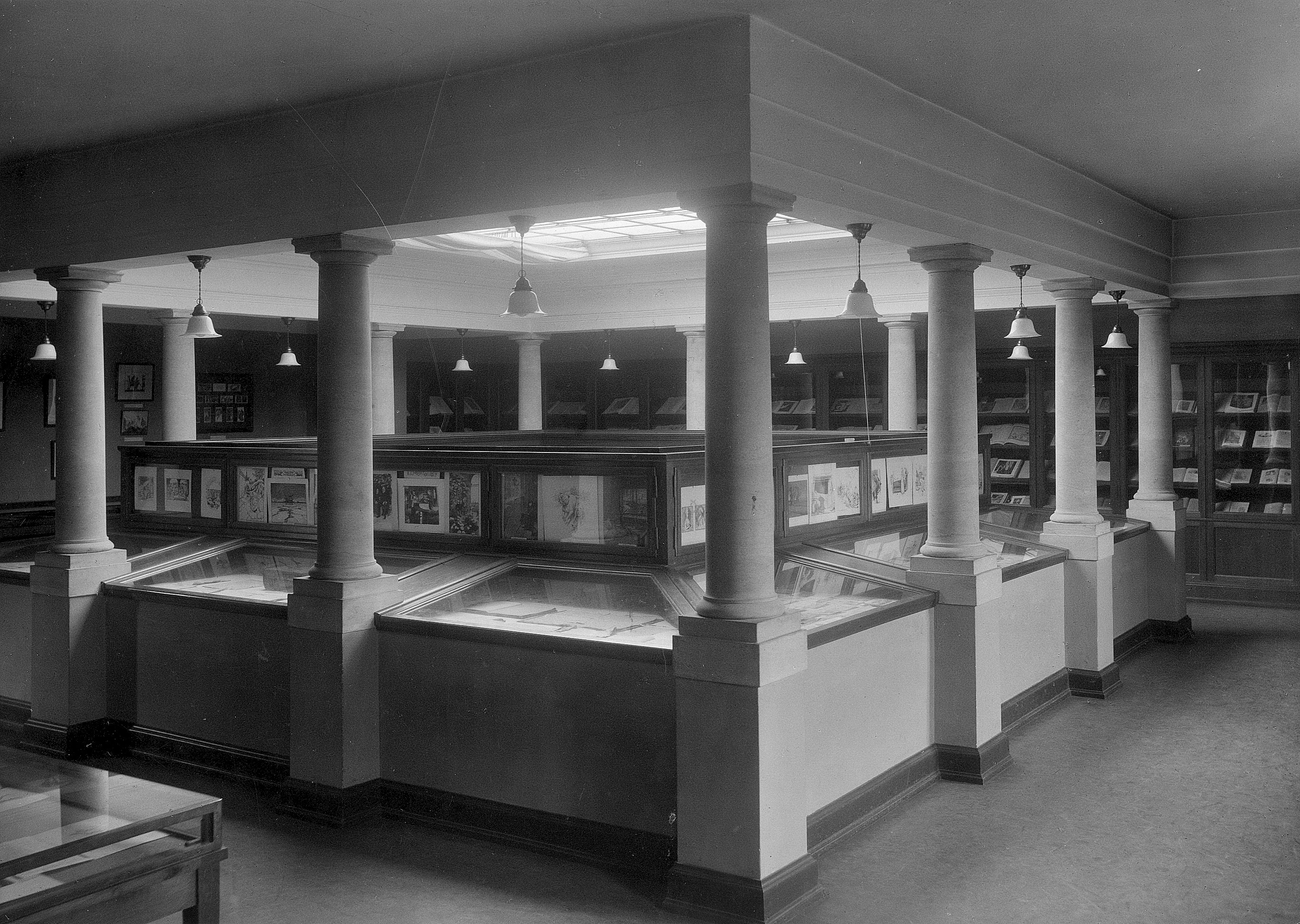 I Østhallen kunne man desuden betragte de interiører, der førhen havde været udstillet i fødehjemmet. Ad en vindeltrappe i Østsalens hjørne kunne gæsterne komme op på første sal til Biblioteksværelset og Nordsalen. På førstesalen kunne man studere H.C. Andersens hædersbevisninger, hans litteratur i adskillige sprogudgaver, bøger med digterens egenhændige tilegnelser, manuskripter, tegninger og klip.