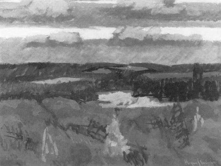 Fig. 9. Mogens S. Andersen. Nordjysk landskab – Eftersommer. 1989, 100,0 × 130,0 cm.