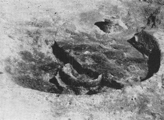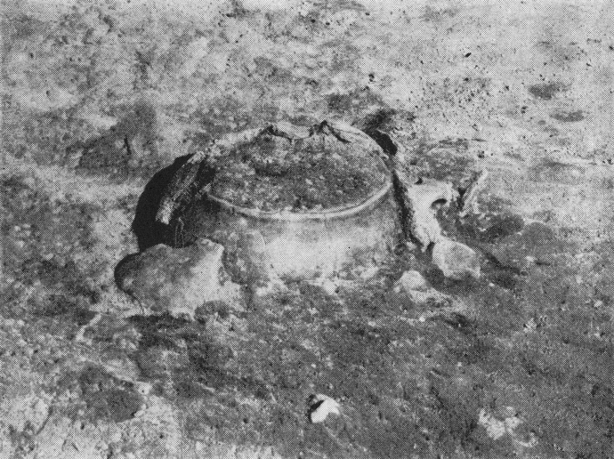 Beskadigelse af karrene er desværre temmelig udbredt på Møllegårdsmarken. Årsagen hertil er den, at de ikke er sænket ret dybt i jordsmonnet. Urnebundene står som regel kun ca. 60 cm under markfladen, og det betyder, at ploven i de fleste tilfælde har skåret det øverste af karrene, se fig. 2 og 3. Dertil kommer, at tunge markredskaber har klemt dem i stykker, planterødder og vinterfrost sprængt dem i skår. I regelen finder vi kun en sammentrykt masse skår, som det er et tidkrævende arbejde siden at rense og sammenlime. Men resultatet lønner i mange tilfælde anstrengelserne; man kan se det af prøverne på restaurerede lerkar fig. 7.