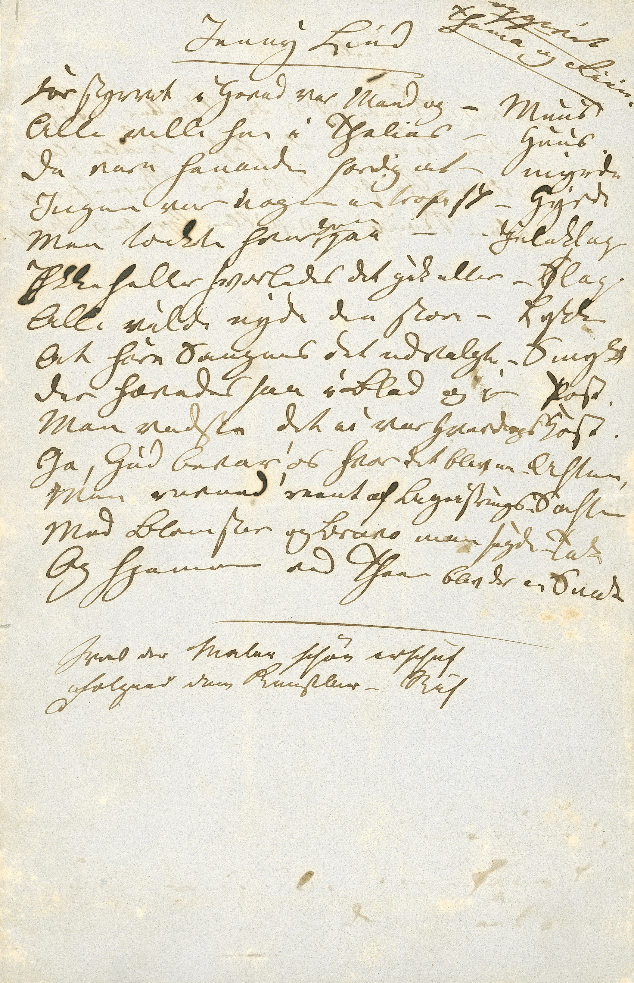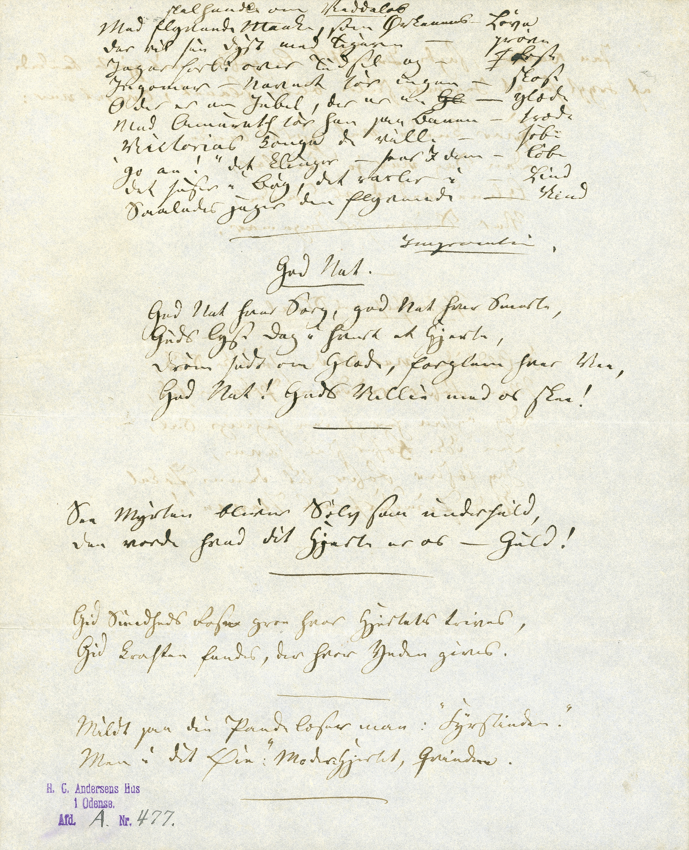 H.C. Andersen skulle så lynhurtigt skrive et digt. Den dansk-amerikanske skuespiller og H.C. Andersen-entusiast, Jean Hersholt, der i 1949 udgav sin oversatte H.C. Andersens samlede eventyr til amerikansk med titlen The Complete Andersen indsamlede så mange originale manuskripter, han kunne. Disse originale manuskripter viser, hvordan H.C. Andersen arbejdede.