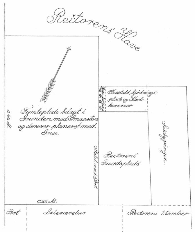 Grundplan af skolens „Tumleplads“ m.v. efter reguleringen 1822.