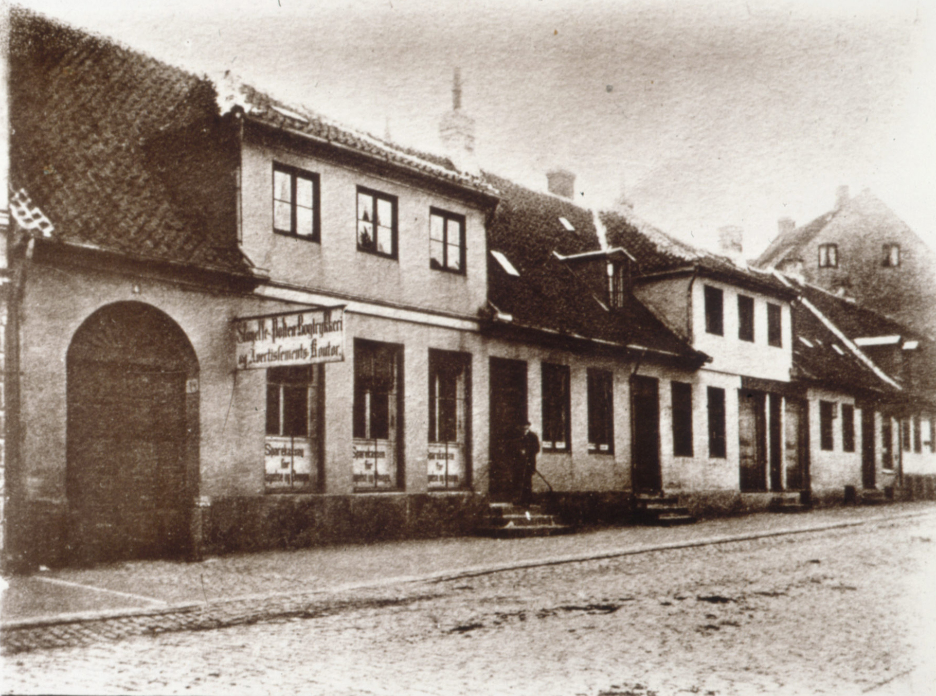 Sammen med en anden, lige et år ældre, skolediscipel, Jens Mathias Fischer, søn af en nylig afdød sognepræst i Bringstrup ved Ringsted[9], fik Andersen værelse i baghuset, hvor de to delte havestuen og kammeret. Hvis der ikke er blevet flyttet meget om med tingene i mad. Hennebergs sidste leveår, véd vi fra hendes skifte[10], hvorledes de to små stuer var møblerede: I kammeret en sofa, fire stole, et spejl og et sæt „Ildtøj“, vindues- og rullegardiner til to fag; i havestuen stod et rødmalet linnedskab, en himmelseng, som de to logerende nok efter tidens skik har delt, et rødmalet bord og fire stole; der var tre skilderier og et spejl på væggen og røde repsgardiner for vinduerne. Så komfortabelt havde Odensedrengen jo aldrig før haft det i sit liv (og fik det heller ikke før langt senere); helt hyggeligt må der have været i den lavloftede stue, hvor sydsolens stærke skær faldt dæmpet ind gennem de små solbrændte ruder og vildvinens ranker på muren udenfor. Sommeraftnerne har han tilbragt i haven, hvor han, som i Odense, sad og sang, så folk i nabohusene lyttede dertil — blandt dem præsteenken i huset ved siden af, mad. Lange født Payngk og hendes to døttre, Thea og Elisa, der snart blev hans gode venner[11]. Flittig har han læst og søgt at tilegne sig det uhyre stof, der lå og ventede på ham; digtet har han også, skønt det var forbudt! Her har han skrevet sangen, som blev sunget i Klosterkirken ved dr. Meislings indsættelse i rektorembedet den 16. juli 1823[12], og det mindedigt over hans ven og beskytter, provst Gutfeldt, der står at læse i den vest-sjællandske avis for 1. februar s.a. og som vandt ham en ven i avisens redaktør, pastor Bastholm[13]; her skrev han også en vise for de Slagelse borgere, der på „Post-gaarden“ slog katten af tønden[14]; den begyndte særdeles festligt: