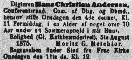 Men H.C. Andersen selv kom ikke mere til kræfter og friskhed. Det hjem, der havde givet ham den bedste gave, han kunde få, hygge og tryghed, og havde været rammen om mangen en strålende fest – som oftest til ære for ham – det skulde også blive det sted, hvor han fandt sin død.
