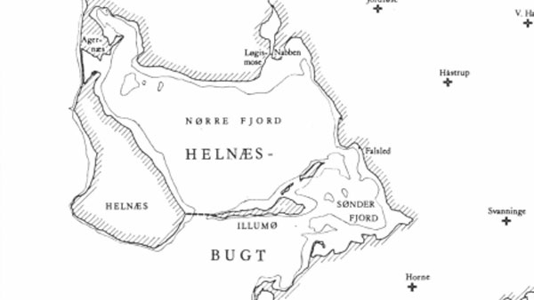 15. ^ At Helnæs var et næs, altså landfast, allerede i vikingetiden fremgår af en runesten fundet 1860 på Helnæs. Indskriften indledes med ordene „Roulv, næsboernes gode, satte stenen . . .“ En sten fra Voldtofte mark, Flemløse sogn, indledes med ordene „Efter Roulv, som var var næsboernes gode, står denne sten, . . .“