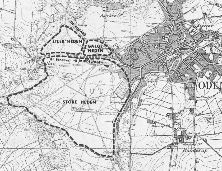 Heden vest for Odense strakte sig mod syd til Hedebækken, mod vest til Bolbro Rende (nu rørlagt) og mod nord til Åløkkemarken. Man skelnede mellem Store Heden, Lille Heden og Galgeheden.