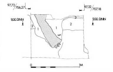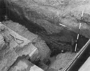 Fig. 18. Snit i voldgraven under fortovet nord for Nonnebakken. (Møntergården foto, 18. maj 1988).