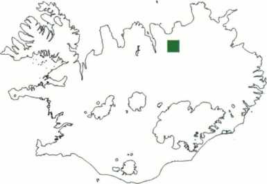 Kort over Island. Området Pegjandadalur er markeret med grønt.