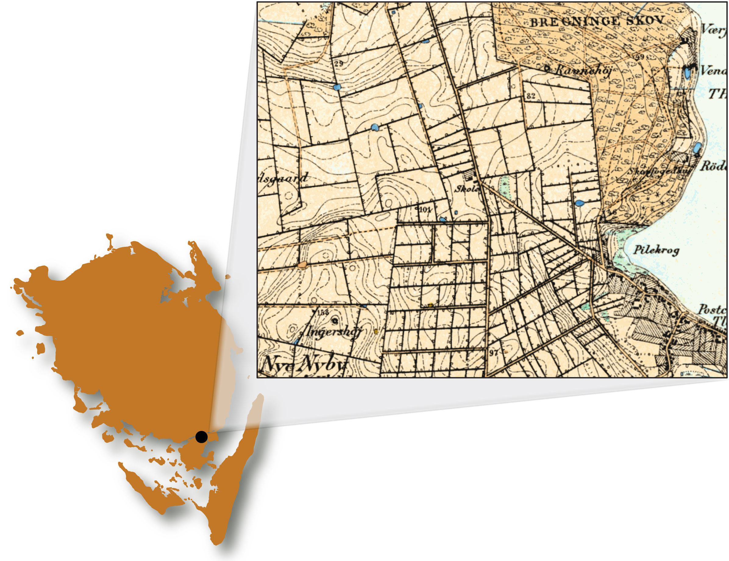- ^ Brev fra J.P. Jensen til Bregninge Sogneråd, 11. april 1899, findes på LAO (se note 15).