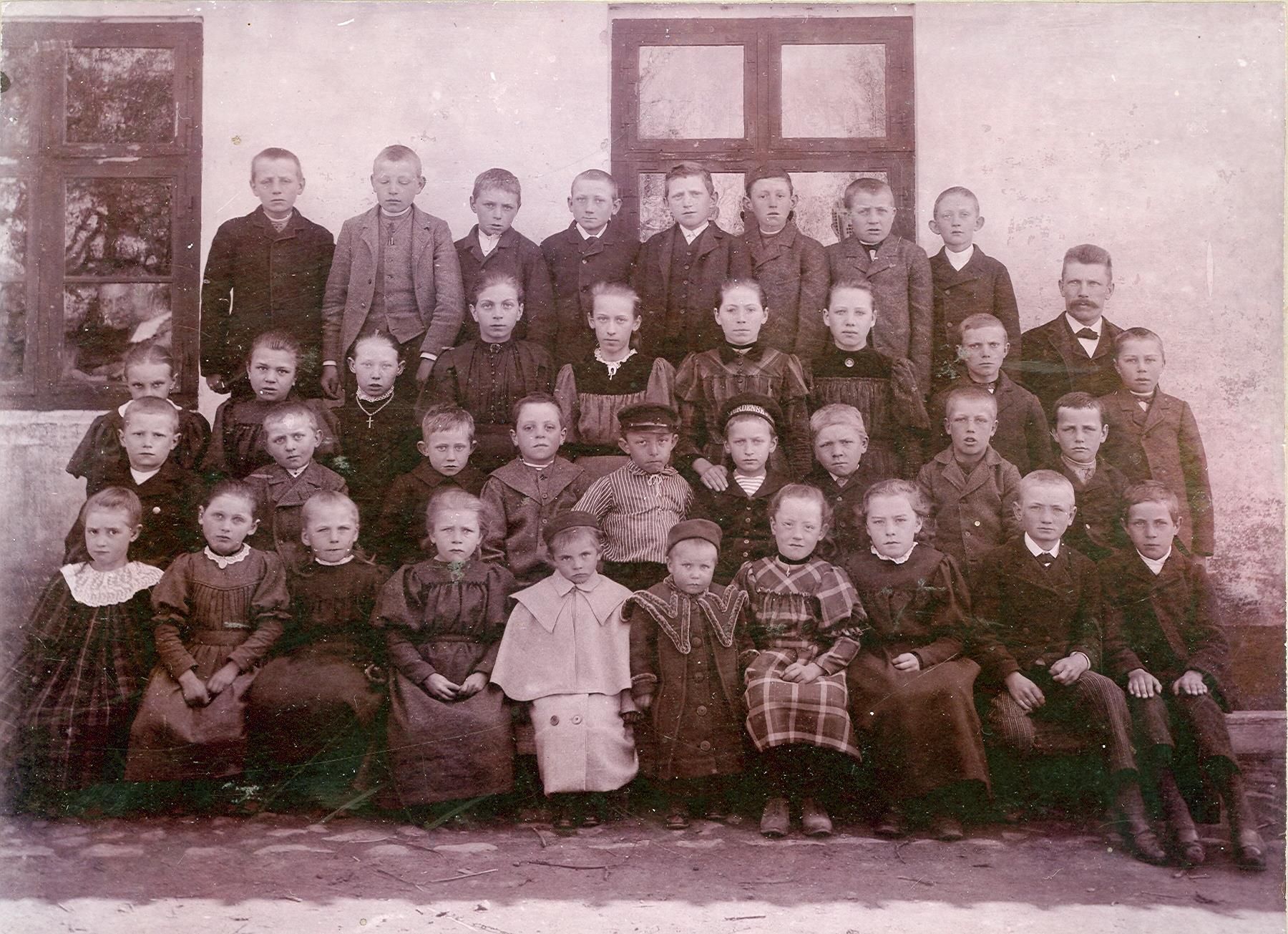 Om lærer Jensen ved vi ellers ikke så meget. I perioden 1883-1889 sad han i sognerådet for Bregninge Sogn[24], og han var lærer ved Frederik Juels Skole indtil 1894, hvor han flyttede til Troense for at overtage lærerembedet dér. Imens Jensen var lærer, blev skolen udvidet med 5 alen (godt 3 meter) i hver ende. Tilbygningen skete på baggrund af ønsket om bedre ”Betingelser for Børnenes Sundhed” og af hensyn til skolelærerfamilien, der ”bestaar af flere Børn”.[25] Skolelærerfamilien udgjordes i 1883 af Jens Peter Jensen (40 år), hans hustru Sophie Frederikke Frederiksen (42 år), og deres fire børn – Lovise (9 år), Petra (6 år), Carl Emil (4 år) og Anton (2 år).