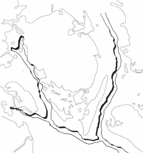 Det nuværende Lillebælt var en dybt skåret dal med et langstrakt flodsystem i bunden. Flodsystemet havde sandsynligvis udløb i de store nordtyske søer, der nu ligger under havbunden sydvest for Fyn og syd for Ærø[5]. De nordtyske søer er antageligt løbet ud i det flodsystem, der løb op igennem det nuværende Store Bælt, som dog har en noget kompliceret historie med flere gennembrud til Kattegat vekslende med afbrydelse af havforbindelsen. Figur 1.