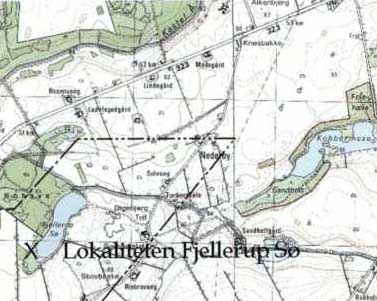 Ved Fjellerup Sø er der i 1940’erne opsamlet et lille materiale fra Maglemosekulturen. Blandt andre redskaber blev der fundet mikrostikler og mikrolitter ved den lille sø, der næppe i sig selv har kunnet bære længere tids bebyggelse. Fjellerup Sø ligger i den østlige udkant af hovedvandskellet mellem det bassin der afvandes af Odense Å ud i Odense Fjord, og det bassin der afvandes af Ørbæk og Kastel Å ud i Storebælt. Figur 5. Lokalitetens inventar er ikke stort, og det er derfor vanskeligt at vurdere karakteren af lokaliteten på den baggrund. Den topografiske beliggenhed er bemærkelsesværdig. Fra lokaliteten er der kun 1000 m til Kastel Å og 1800 m til Ørbæk, mens Fjellerup Sø selv står i forbindelse med Odense Å. Det er en oplagt mulighed, at lokaliteten var en transitlokalitet, som Maglemosefolkene benyttede når de ønskede at flytte fra det store vandsystem ved Odense Å til det endnu større vandsystem ved Storebælt, eller omvendt.