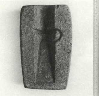 En ældre bronzealder sten form i klæbersten fra Hestholm, Gamtoftesogn Baag Herred, Odense Amt.