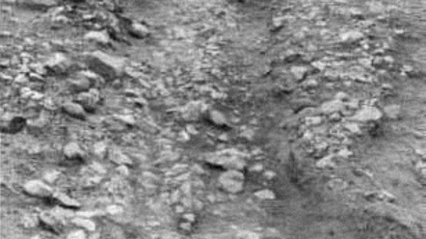 Fig. 1. Et udsnit af det nordlige vejforløb, med tydelige kørespor i stenlægningen.