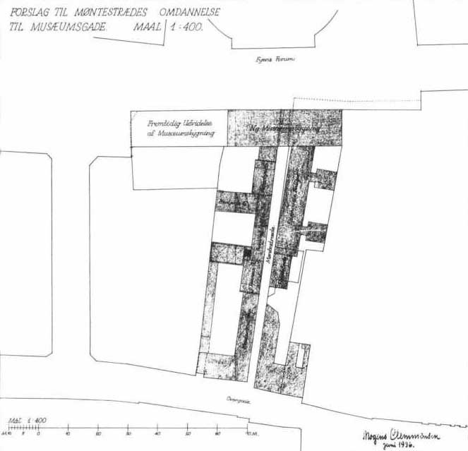 Ved vurderingen af 1936-forslaget må det understreges, at det som sin forudsætning havde den lange smalle Møntergårdsgrund. En anden forudsætning er den, at Møntestrædes østlige side tænktes anvendt på samme måde, til belysning af kulturhistorien efter år 1800, dels i de bestående bygninger, dels i andre gamle bygninger, som med tiden ville blive »disponible«. Møntestræde ville altså blive en virkelig museums gade, og indgangen var logisk nok placeret midt i gaden.