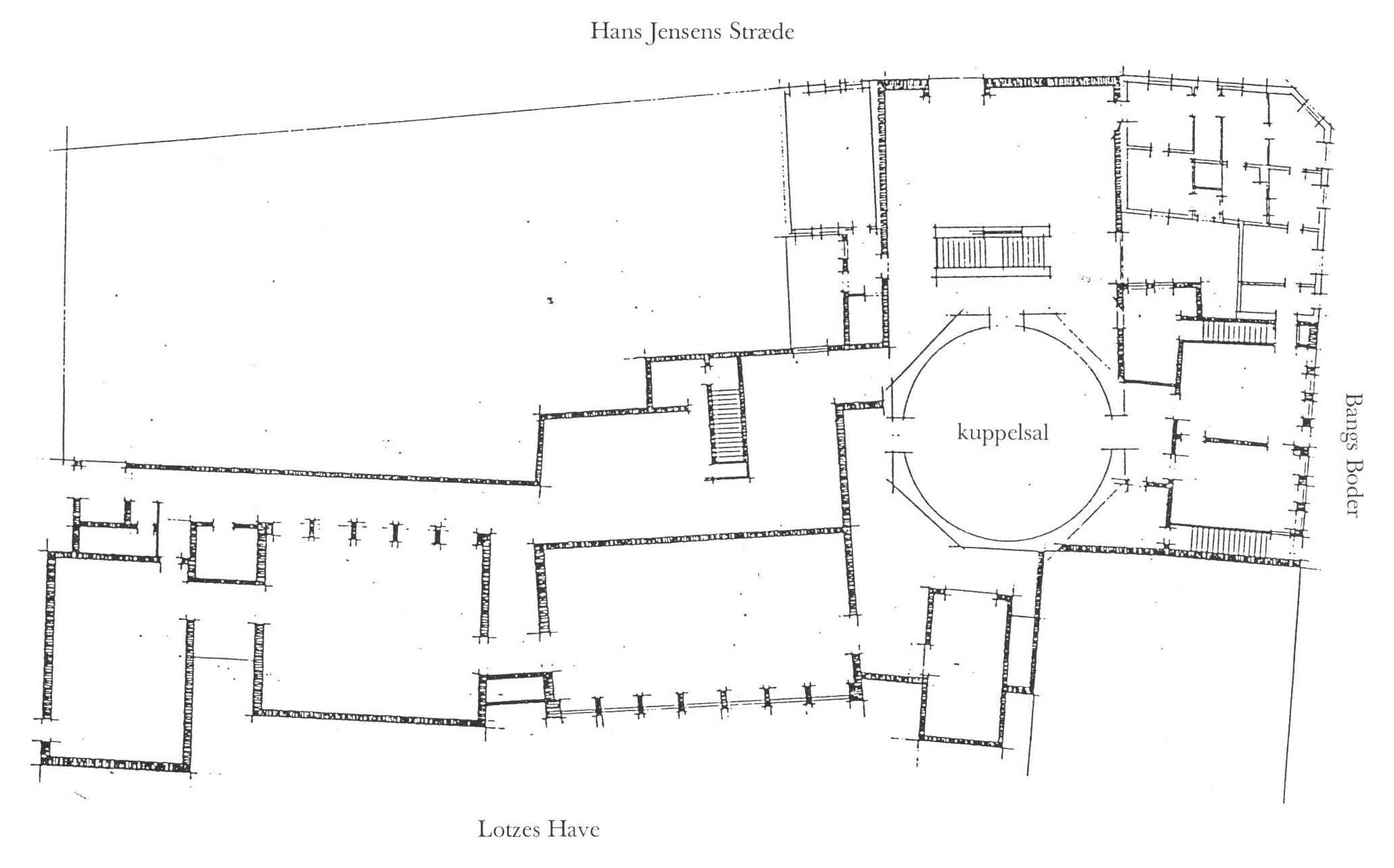 Da Niels blev museumdirektør i 1964 forelå der et skitseringsforslag til en beskeden udvidelse af museet, med opførelse af en bygning i stedet for søjlegården vest for kuppelsalen. På grundlag af mange forhandlinger skitserede vi os frem til et program, der kom til at omfatte en stor nybygning langs Hans Jensens Stræde i Lotzes Have, og en mindre i Bangs Boder. Projektets nye indhold medførte fjernelse af Th. B. Thriges bygninger fra 1930, bortset fra kuppelsalen med de værdifulde fresker.