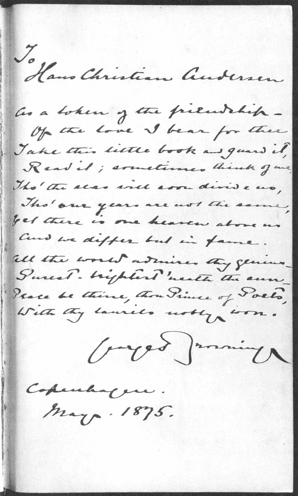 Min kjære Ven, Digteren, Ridder H.C. Andersen tilegnet med Høiagtelse og Beundring