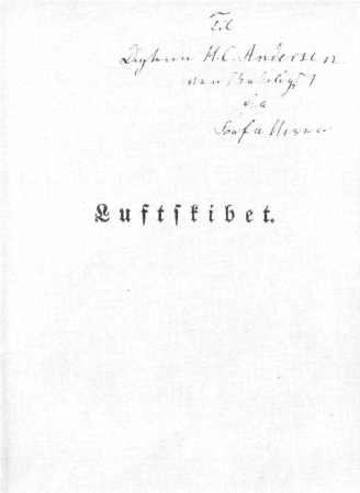 - ^ H. C. Ørsted: Luftskibet. 1836. Orig. kart. På smudstitel: Til Digteren H.C. Andersen venskabeligst fra Forfatteren. AA 186 til ?? med 187-190 30 øre., jf. note 43 Bogh. 66 med note 1610. Arne Bruun Rasmussen kat. 470 marts 1985, vurd. 4000 kr., hammerslag 8000 kr. Odense 89/1985.