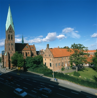 De hidtidige undersøgelser har vist, det oprindelige anlæg, opført 1504-1508 af Jens Andersen Beldenak som bisperesidens, har været et symmetrisk trefløjet anlæg, hvoraf sidefløjene i dag er forsvundet. På den åbne side mod åen har der været en spærremur så der opstod et lukket anlæg, dog med en form for terasse på arealet ned mod åen.