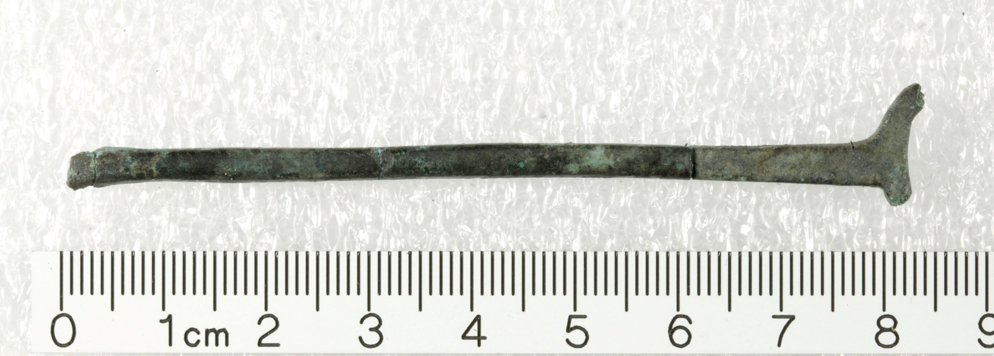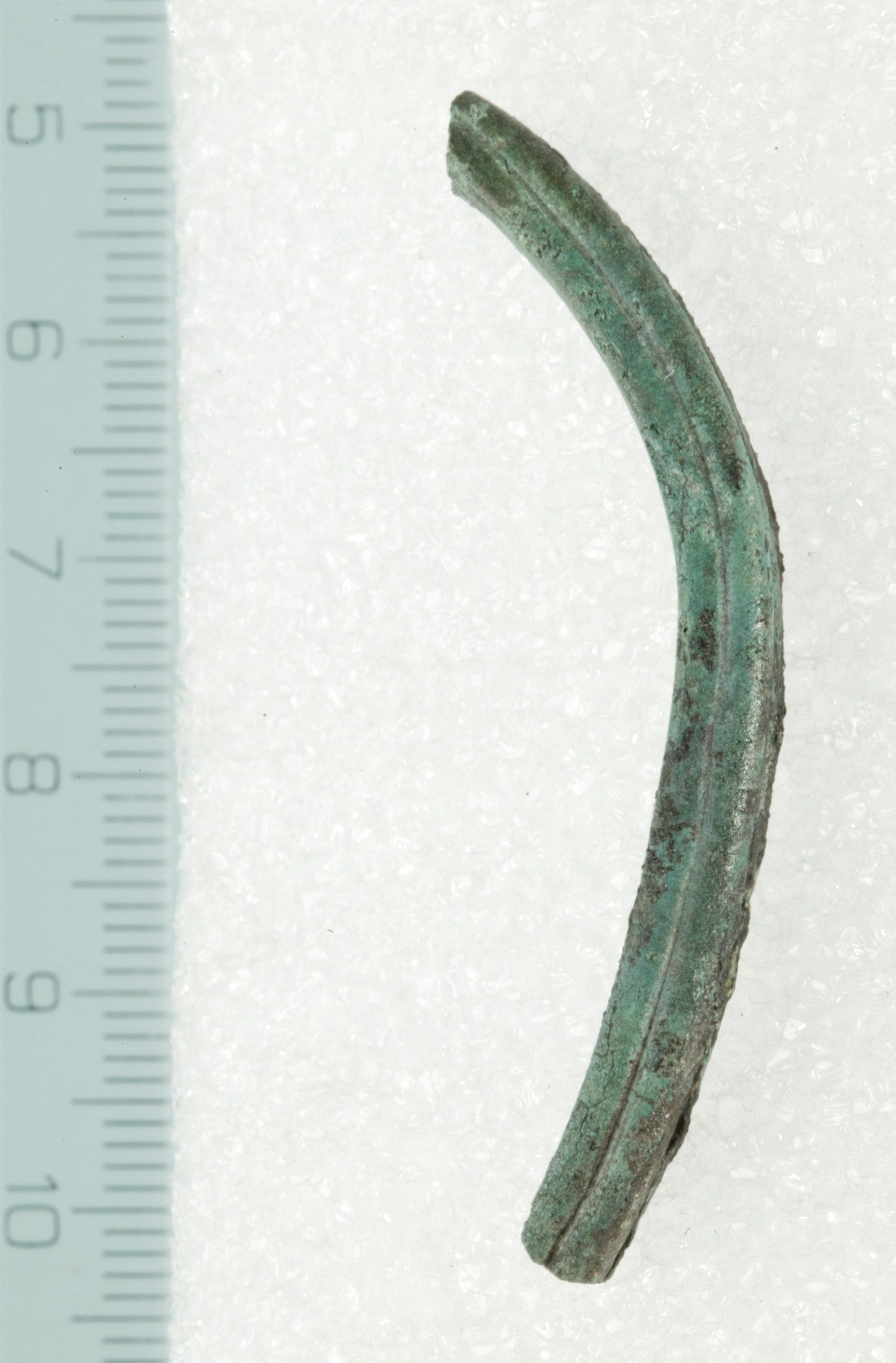 Bronzefragmentet er ca. 1 cm langt, ca. 0,4 cm tykt og har et afrundet rektangulært tværsnit. Stykkets funktion er ukendt, men udgør måske en del af førnævnte øreske/neglerenser?