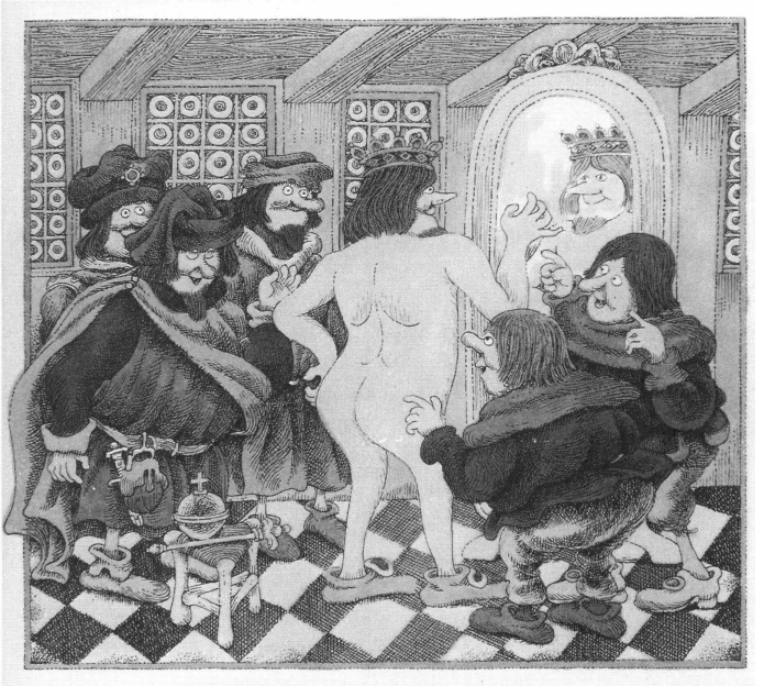 För många år sedan levde en kejsare, som var så gränslöst förtjust i nya vackra kläder att han gav ut alla sina pengar för att bli riktigt fin. Han brydde sig inte om sina soldater, brydde sig inte om att gå på teatern eller att åka ut i skogen för annat än att få visa sina nya kläder. Han bytte rock en gång i timmen, och på samma sätt som man säger om en kung, att han är i rådet, så sa man alltid om honom: »Kejsaren är i klädskåpet!«. (H.C. Andersen – en antologi redigerad av Nils Kofoed. Uddevalla, 1960. Översatt av Åke Holmberg.)