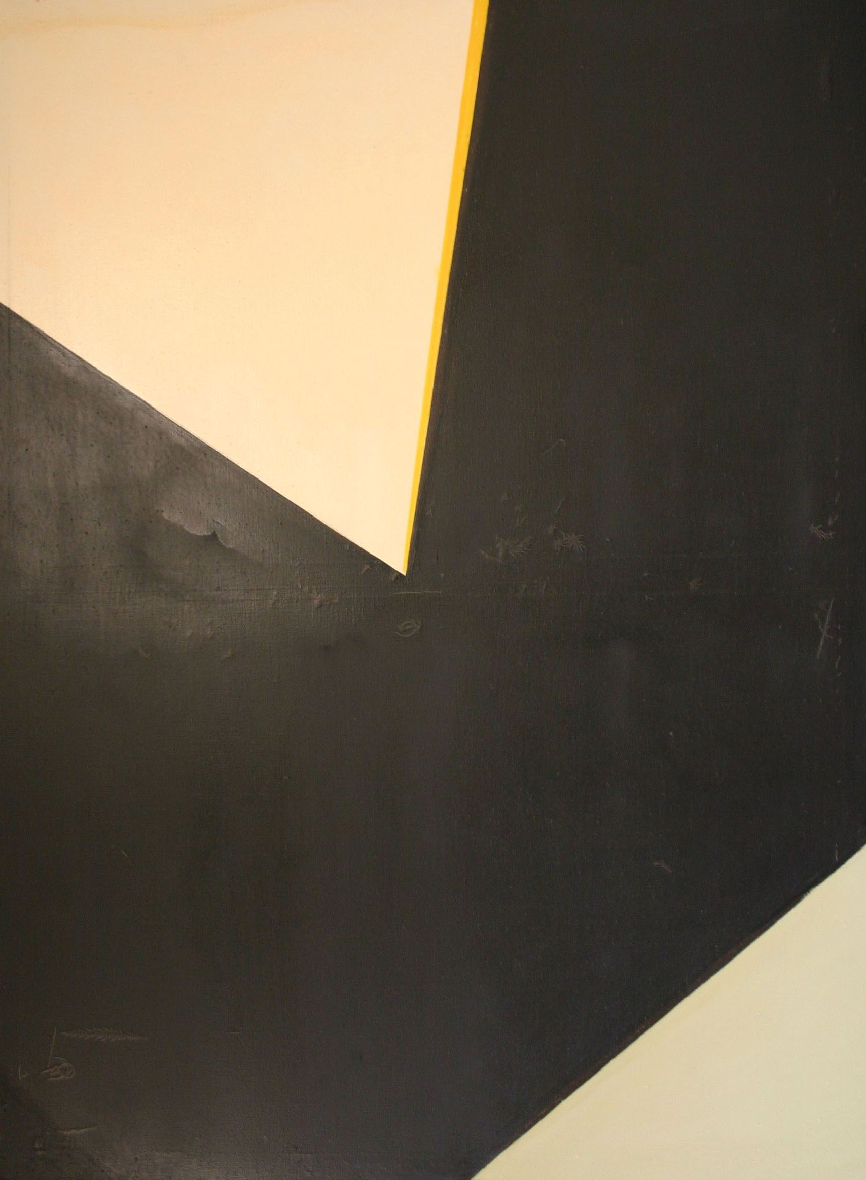 De to senere billeders farveholdning er så godt som identiske – sort og næsten-hvidt. I det ene (flg. 2) skimter en stærk gul dog igennem på samme måde som den orange i det tidlige billede. Maleriet fra 1974 (fig. 3) adskiller sig fra de øvrige ved at introducere et formkompleks, som Brücher Henriksen kun meget sjældent arbejdede med – kombinationen af en stærkt buet form og en lige. Billedet er et godt eksempel på malerens suveræne beherskelse af hele formbegrebet; langtfra at virke aggressiv og dominerende føjer den stærke sorte bue sig til den lige form uden at fladens rolige helhed går tabt.
