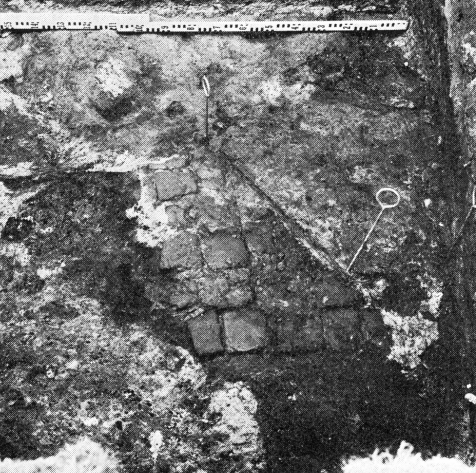 I den vestlige del af matr. nr. 482, ovenpå de gamle begravelseslag, afdækkedes bl.a. en ca. 2 m bred brolægning med afløbsrende.
