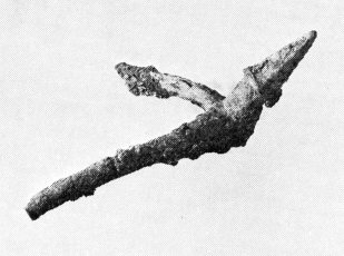 Et fragment af en smukt tilvirket ringbrynje, en spore – (fig. 10) og broncespænder fortjener også at blive fremhævet. Endelig må man notere sig store samlinger af nødder, agern, halm, frø, dyreknogler, gødning, jern- og bronceeffekter.