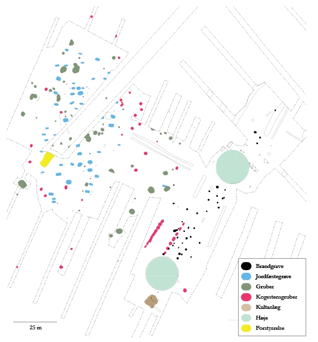 Oversigt over de væsentligste anlæg ved Kildehuse II. Tegning: Allan Larsen.