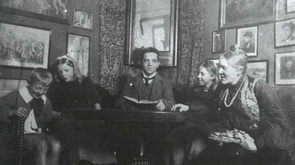 Det er dog ikke mindst bøgerne med personlige hilsener, der forekommer interessante. Museet har i sin samling ikke mindre end 165 bøger med dedikationer til henholdsvis Carl Nielsen og Anne Marie Carl-Nielsen. Mange af disse bøger er skrevet af venner og bekendte i parrets omgangskreds – en kreds, der i øvrigt er blevet beskrevet som “en ny guldalder i dansk åndsliv”[7] under hentydning til, at den bestod af nogle af tidens mest markante personligheder inden for både kunst, musik, litteratur og videnskab: eksempelvis malerne J.F. Willumsen, Anna og Michael Ancher, pianist Henrik Knudsen, sangerinde Elisabeth Dons, forfatterne Gustav Wied, Johannes Jørgensen, Ludvig Holstein, Helge Rode, Sophus Claussen og Jeppe Aakjær samt klassisk filolog Ove Jørgensen og kunsthistoriker Vilhelm Wanscher. Anne Marie Telmányi beskriver i Mit barndomshjem det sociale miljø omkring sine forældre således: “Der sad så Sophus Claussen, Vilh. Wanscher, sommetider Willumsen og kone … Elisabeth Dons var det dramatiske punkt. Sophus Claussen det lyriske. Vilh. Wanscher det hidsige, fader det åndfulde og pudsige … Moder sad rank og modig i sine meninger, og der var sandelig mange forskellige. Willumsen gerne i kamp med hende, fader humoristisk mæglende, Wanscher ivrigt gestikulerende … En stemning bredte sig, hvor man følte, at de alle værdsatte hinanden og havde intensiteten i oplevelsen.”[8] Med dette i baghovedet virker det ikke underligt, snarere tværtimod, at omgangskredsen har sat et afgørende præg på indholdet i parrets bogreol.