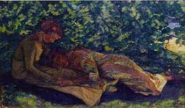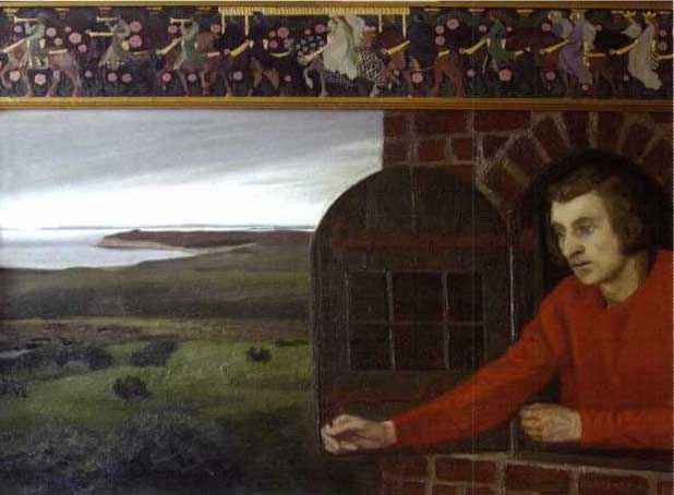 Ridderen og jomfruen under linden, 1903. Olie på lærred. 89 cm x 145 cm. Holger Drachmanns Hus, Skagen