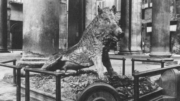 »..foran et Slags Basar, hvor der sælges Grønt, ligger et konstigt vel udarbeidet Metalsvin..« Fontænen som den tog sig ud på H.C. Andersens tid. Foto Archivi Alinari S. p. A. Firenze