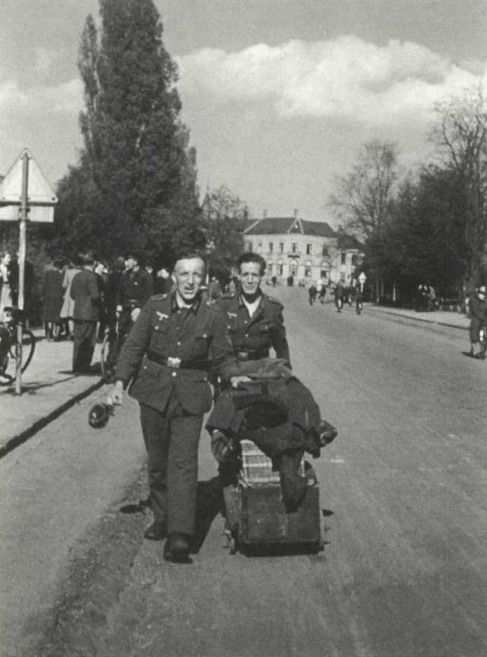 Kolonner af tyske soldater bevægede sig fra 7. maj gennem landet mod grænsen. En del søgte at redde ejendele med sig hjem til en uvis fremtid. De havde hørt om store ødelæggelser. Hvad var der blevet af hjem og familie i Hitlers sønderbombede Tusindårsrige? Mange tyskere var stadig bevæbnede, idet våbnene først blev konfiskeret ved grænseovergangen.